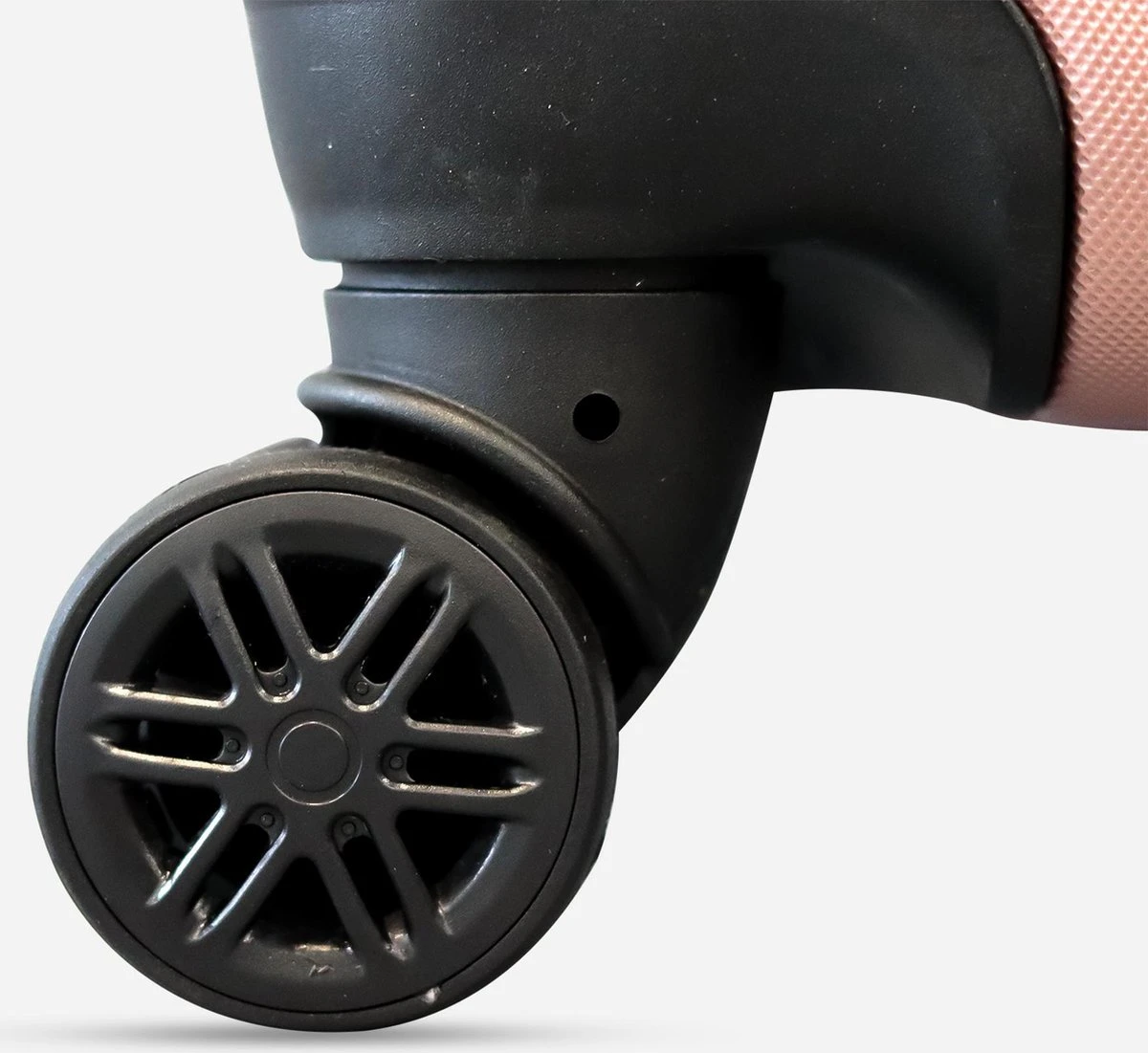Ontdek de wereld met de Bali NO. 22 collectie van TROLLEYZ. Lichtgewicht, sterk en duurzaam; perfect voor elke reis. De Bali NO. 22 kofferset bestaat uit een handbagage koffer en een large reiskoffer, een zeer functionele combinatie. Met de handbagage koffer heb je je essentials altijd dichtbij je. De grote reiskoffer biedt zeer veel ruimte voor alles wat je wilt meenemen en zelfs voor een souvenirtje hier en daar. Ondanks de zee aan ruimte, blijven je spullen toch georganiseerd. Beide koffers zijn voorzien van een compartiment met inpakriemen en en een compartiment dat je kunt afsluiten met een rist. Niets zo heerlijk als chaos free! De handbagage koffer en de grote koffer zijn heel handig in gebruik. Dit komt door de 4 dubbele 360 graden spinners. Oftewel, wieltjes die echt doen wat van ze verwacht wordt: soepeler dan soepel rollen en jouw koffer de wendbaarheid te geven die je zoekt. De wieltjes maken het ook mogelijk om de koffer rechtop naast je te rijden. Ook hebben de koffers de perfecte pushbar die je in verschillende standen kunt zetten zodat je jouw reiskoffer altijd op de juiste hoogte kunt vasthouden. Het design van de koffers past perfect bij elkaar. Ware iconen, met een eigentijdse look. De kleur Cosmopolitan heeft een frisse look met een speelse twist. Sweet travels are made of this…