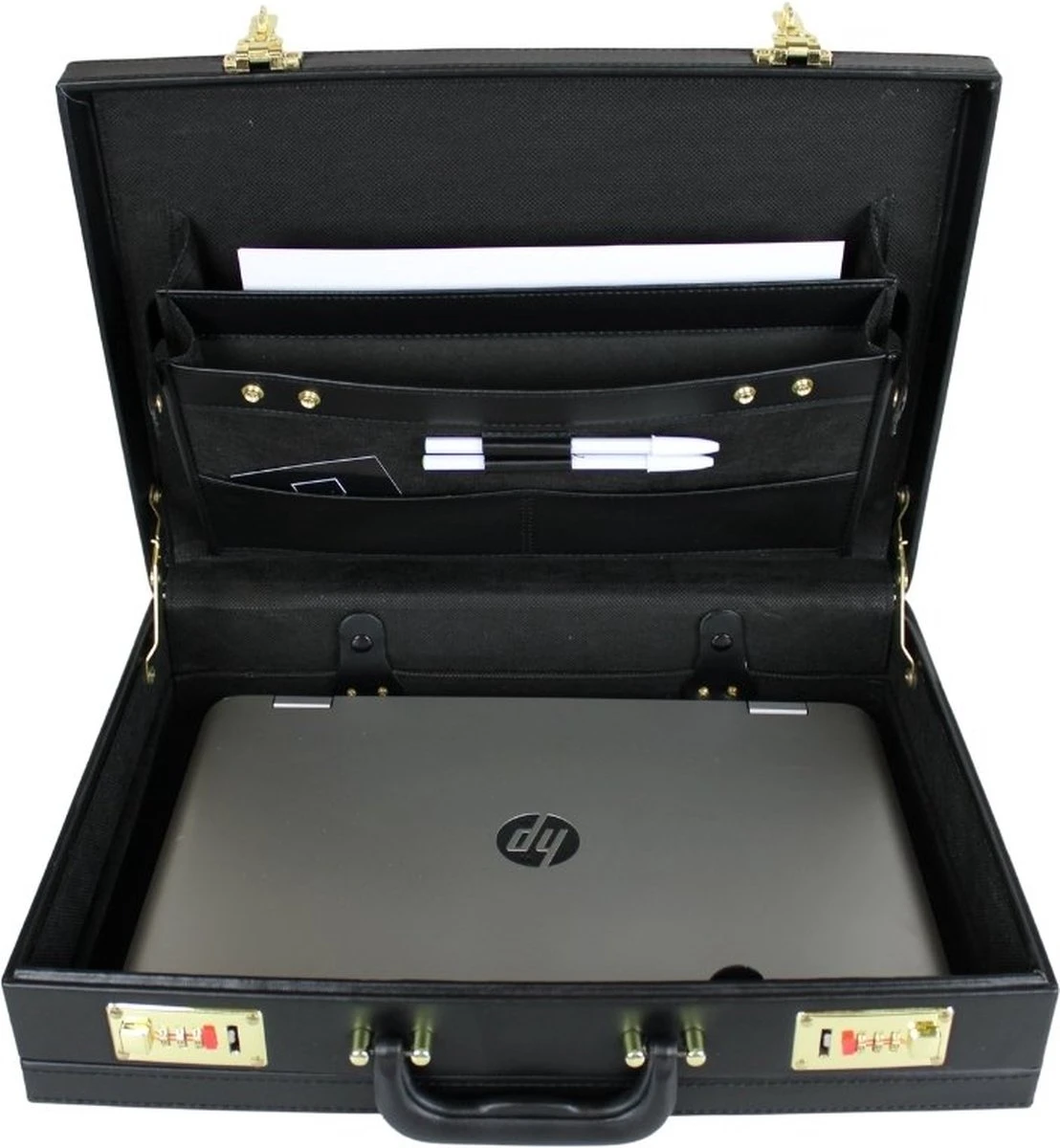 Attaché koffer met luxe binnenkant en dubbele cijferslot. De binnenzijde van de deksel is voorzien van een uitgebreid verstelbare organiservak. De attaché is geschikt voor A4 documenten,laptop en bevat diverse opbergmogelijkheden voor o.a. pennen en visitekaartjes. De koffer sluit af met een dubbel cijferslot die goudkleurig is. Het cijferslot kan eenvoudig gewijzigd worden, hier zit een beschrijving bij toegevoegd. Kortom een handige attache koffer met een zakelijke/luxe uitstraling.