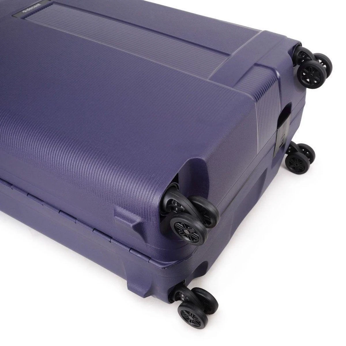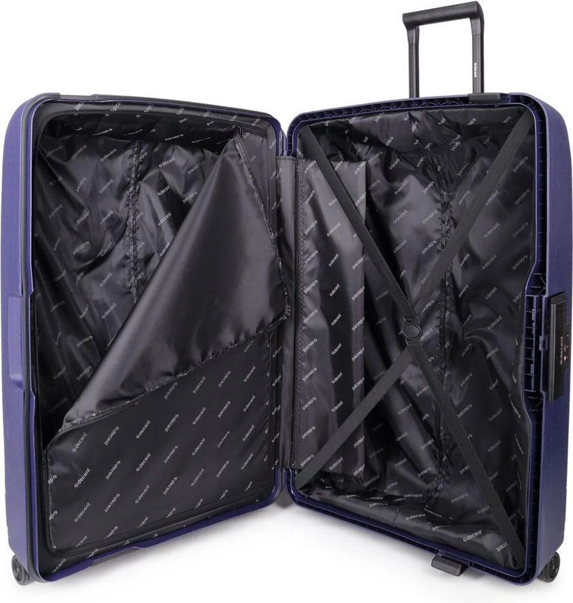 Middelgrote polypropyleen hardschalen koffer uit de Transit serie van het merk Decent. De koffer is rondom voorzien van drie kliksloten. Op de boven-en onderkant zitten sloten die u vastklikt en op de zijkant zit het hoofdslot dat een TSA cijferslot is. De koffer heeft een zwarte voering, een tussenschot met rits, een extra ritsvak en is voorzien van spanbanden. Handvat op bovenkant en zijkant en voorzien van een comfortabel dubbel 4-wiel systeem.