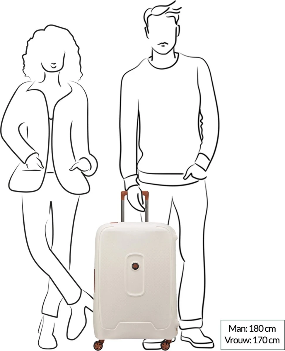 De Moncey 4 Wheels Trolley 69 van het merk Delsey is een middelgrote, sterke en duurzame koffer. De koffer is vervaardigd uit 100% polypropyleen en is hierdoor zeer schokbestendig. Het is een duurzame koffer die jarenlang gebruikt kan worden voor diversie avontuurlijke reizen. De koffer heeft een vaste sluiting met een TSA-combinatieslot voor een perfecte bescherming van de bagage. Kleding is zeer geordend op te bergen dankzij de elastische inpakriemen, het afsluitbare ritscompartiment en de diverse ritsvakken. De vier geruisloze en dubbele wielen zorgen voor een maximaal gebruiksgemak. Kenmerken: * Hoofdcompartiment met vaste sluiting* Inpakriemen* Afsluitbaar ritscompartiment* Diverse ritsvakken* Vier dubbele, 360 graden draaiende, geruisloze wielen* Uitschuifbare trekstang* TSA-combinatieslot* Adreslabel* Geschikt voor ongeveer 20 kilo bagage