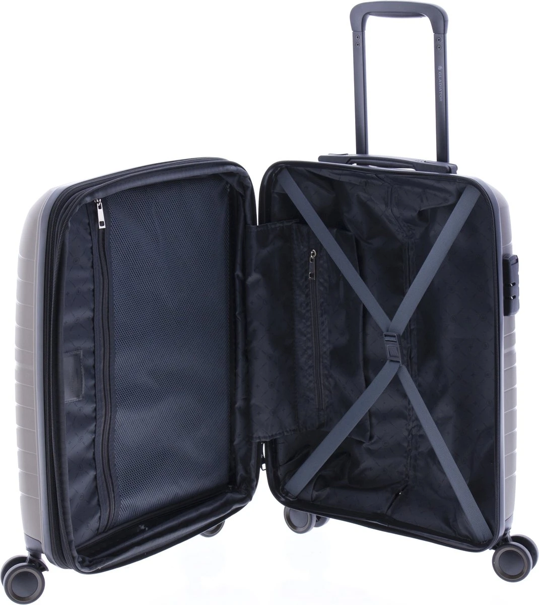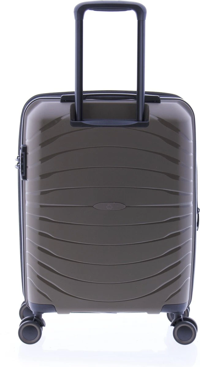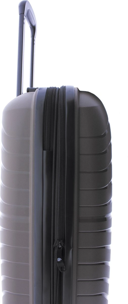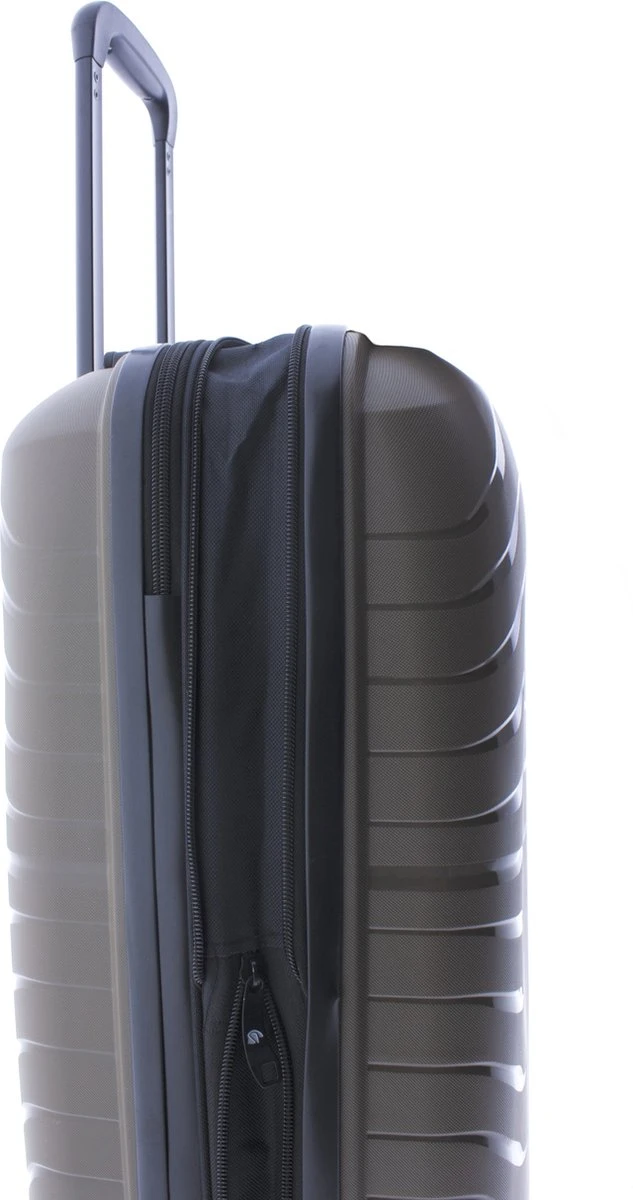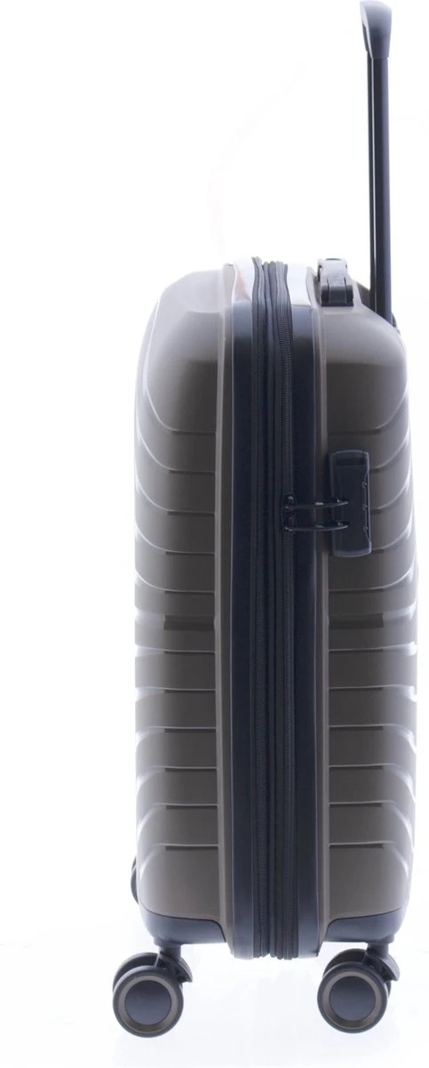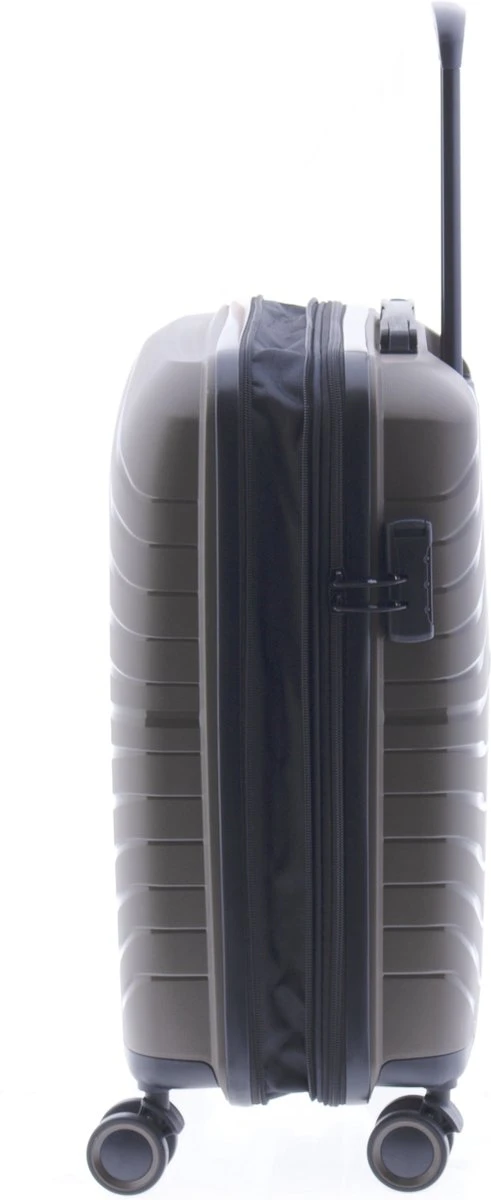 Mooie hardschalen handbagage koffer gemaakt van recyclebaar polypropyleen. Koffer is voorzien van een ritssluiting rondom en een extra expandable rits waarmee de koffer qua volume te vergroten is van 36 naar 40 liter. Binnenin gevoerd en voorzien van tussenschot met ritssluiting, ritsvakje en spanbanden. Koffer is op slot te zetten middels een vast cijferslot op de zijkant van de koffer. Handvat op bovenkant en voorzien van comfortabel 4-wiel systeem.