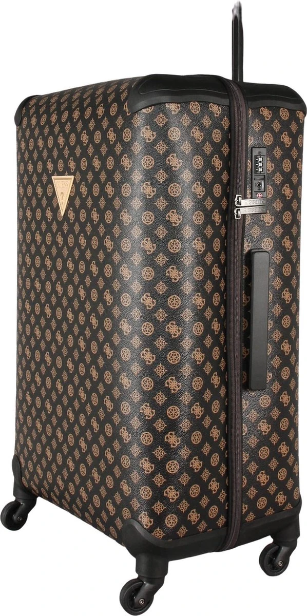 Koffer uit de nieuwste collectie van Guess. De koffer heeft een groot formaat en is dus ideaal als reiskoffer. De koffer is voorzien va het merklogo allover en het bekede logo aan de voorzijde. De koffer is te sluiten doormiddel van een ritssluiting en een cijferslot.