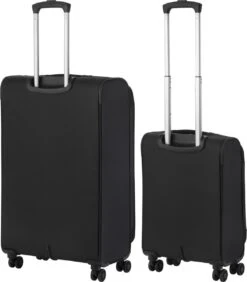 TravelZ Softspinner TSA Kofferset – 3-delige Zachte Trolleyset – Dubbele Wielen En Voorvakken Zwart