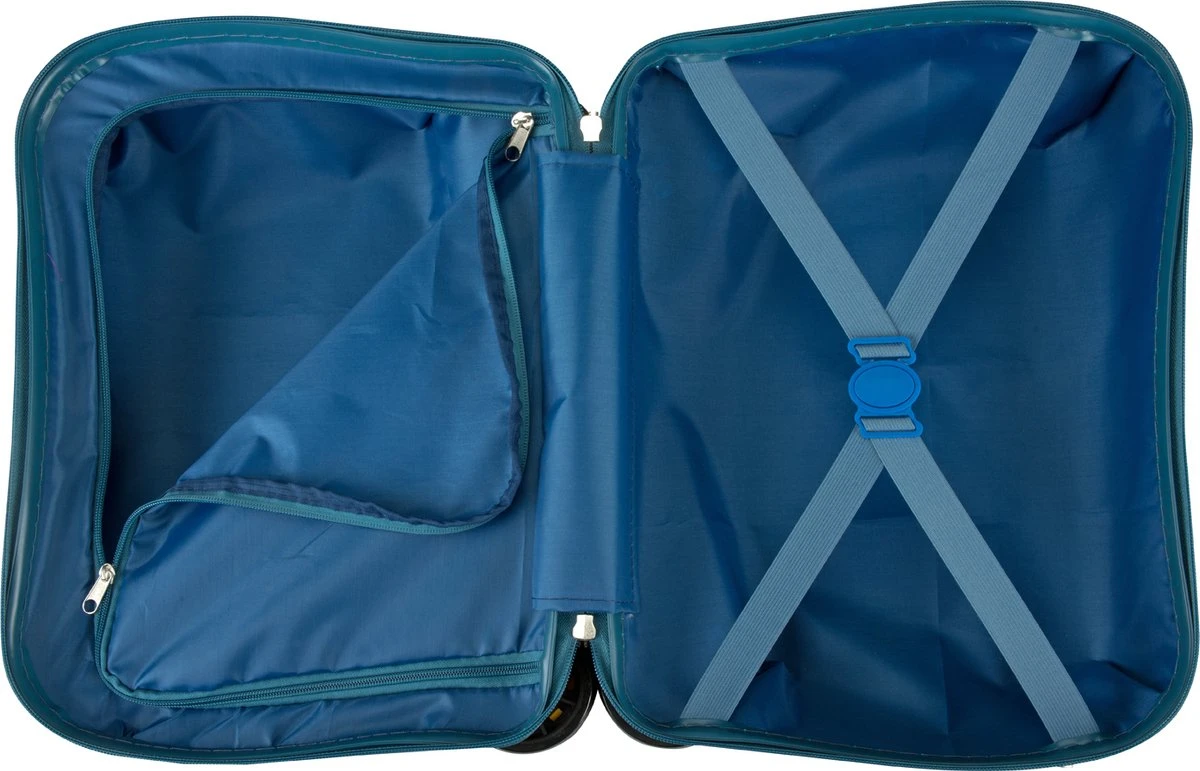 De Ride on trolley is geschikt als handbagage en heeft leuke dino plaatjes op de ABS shell zitten. Er passen genoeg kleurboekjes en potloden in om je mee te vermaken.