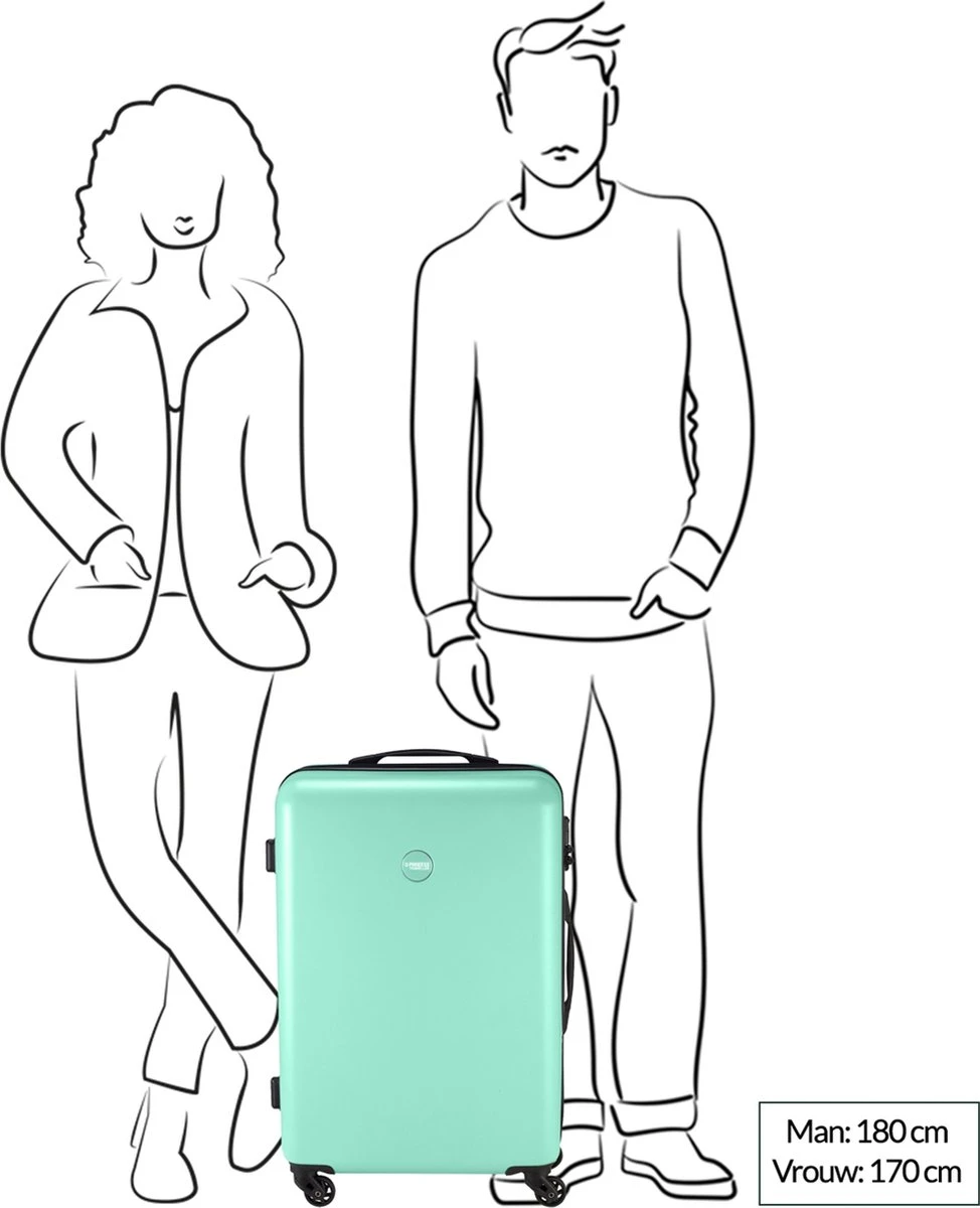 De collectie is beschikbaar in 3 maten (small, medium en large) en 7 opvallende kleuren met een matte afwerking. Door het extra lichte gewicht van: Small (2.5kg), Medium (3.3kg) en Large (4kg) check jij zorgeloos je bagage in.