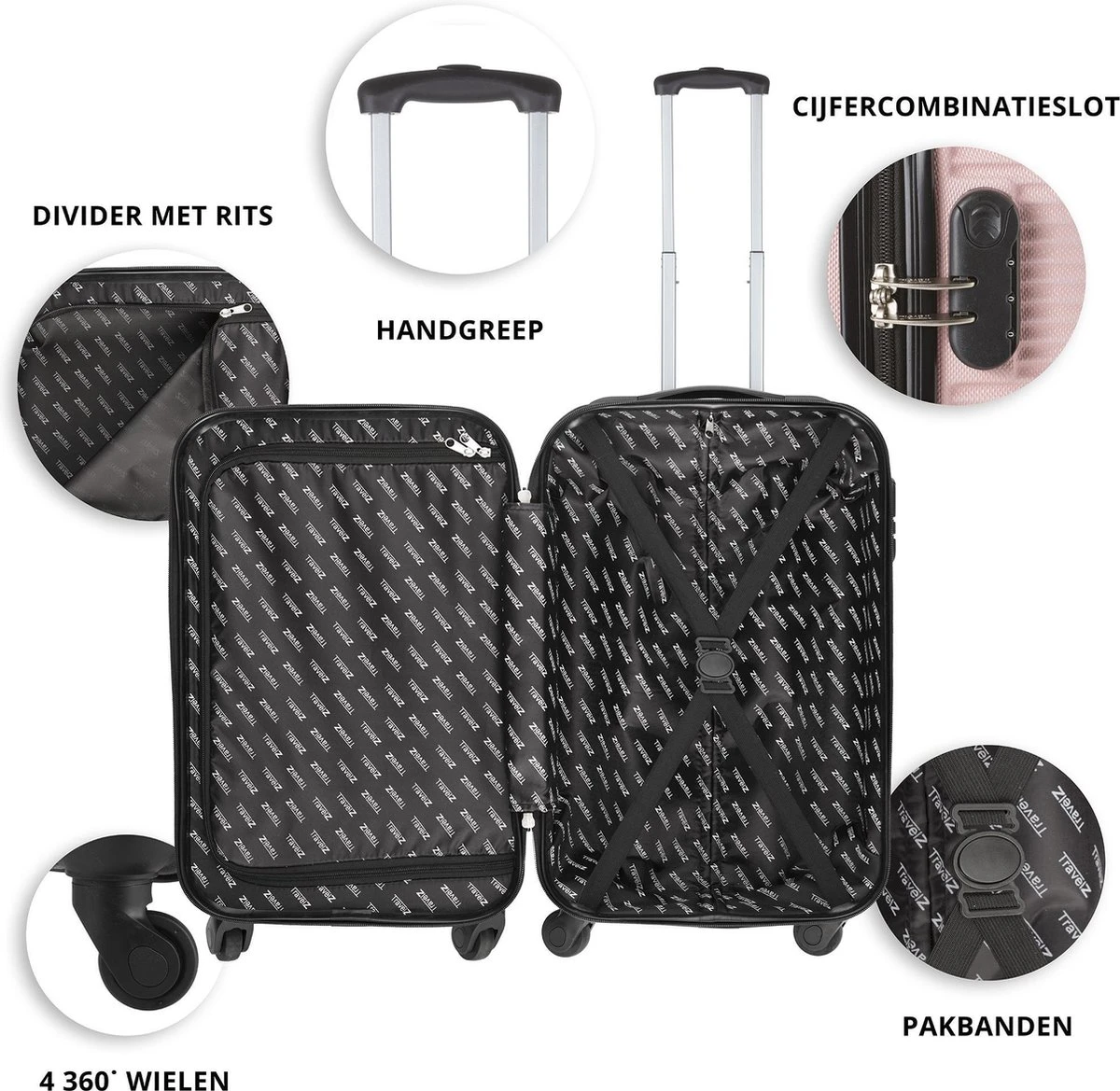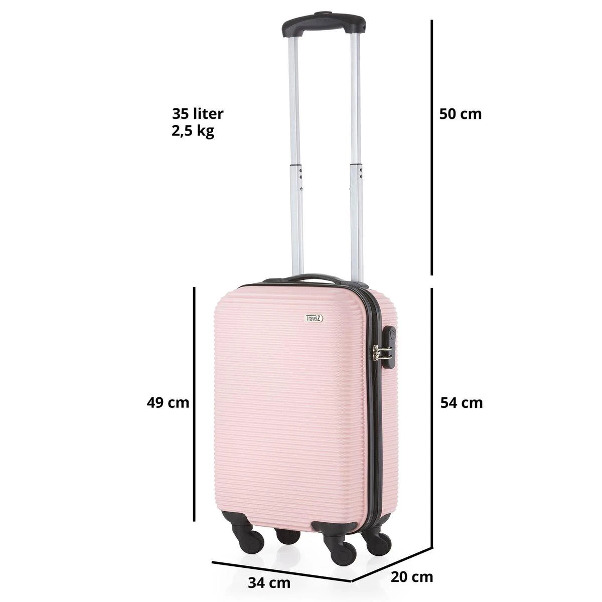 TravelZ Horizon Handbagagekoffer – 54cm Handbagage Trolley Met Gevoerde Binnenkant – Baby Roze